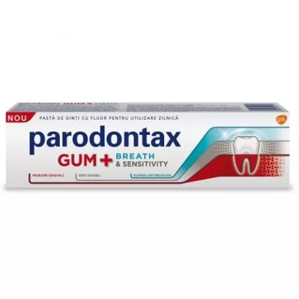Pasta de dinti Parodontax Gum Breath Sensitivity, 75 ml, Parodontax Proprietati:Pasta de dinţi cu fluor parodontax Gum+ Breath & Sensitivity