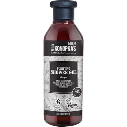 Proprietati:Acest gel de dus purifiant contine amestecul Dr. Konopka’s Herbal Blend N54 si salvie organica imbogatita cu carbune de bambus.