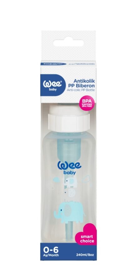 Hrănire sigură, confortabilă și fără disconfort pentru bebelușBiberonul Wee Baby din polipropilenă (PP) de 240 ml, cu desen colorat și